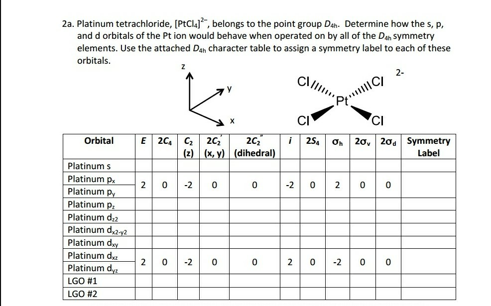 Solved 2a Platinum Tetrachloride Ptcl4 Belongs To Th Chegg Com