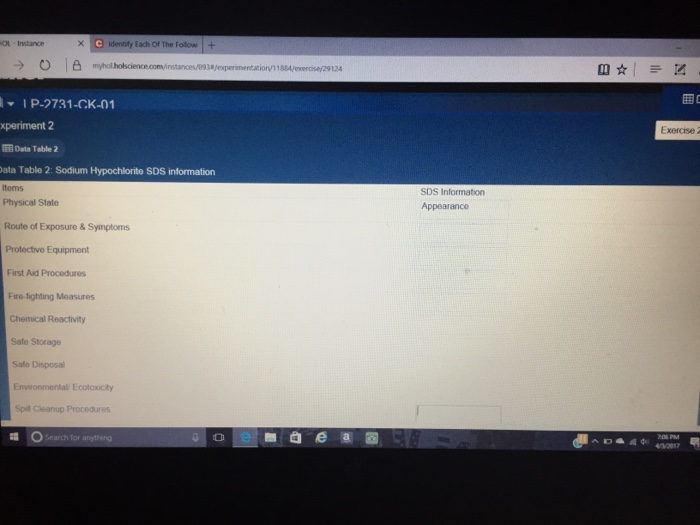 Solved 124 Data Table 2 Ata Table 2 Sodium H Hlorite Sds Chegg Com