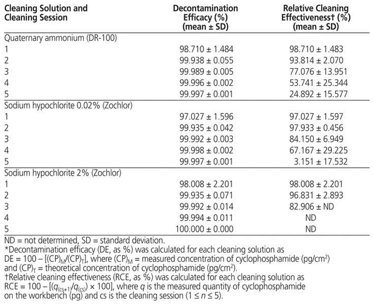Comparison Of Decontamination Efficacy Of Cleaning Solutions On A Biological Safety Cabinet Workbench Contaminated By Cyclophosphamide Ade The Canadian Journal Of Hospital Pharmacy