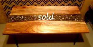 Bench With Epoxy Finish And Redwood Legs Two Idaho Silhouettes With Bullet Glow In The Dark Epoxy Around Inlays Decor Coffee Table Glow In The Dark