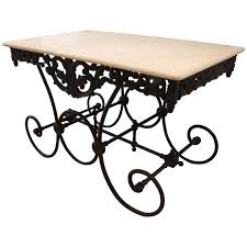 French Iron Baker S Table With Marble Top 1stdibs Com Bakers Table French Bakers Table Iron Furniture