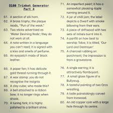 Nothing Helps Weave Backstory For A Character More Than A Trinket Or Two Use This D100