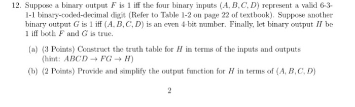 Solved 12 Suppose A Binary Output F Is 1 Iff The Four Bi Chegg Com
