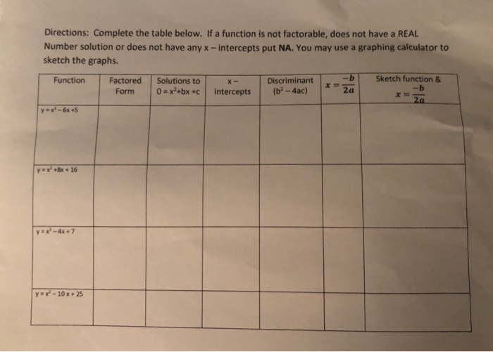 Solved Directions Complete The Table Below If A Functio Chegg Com