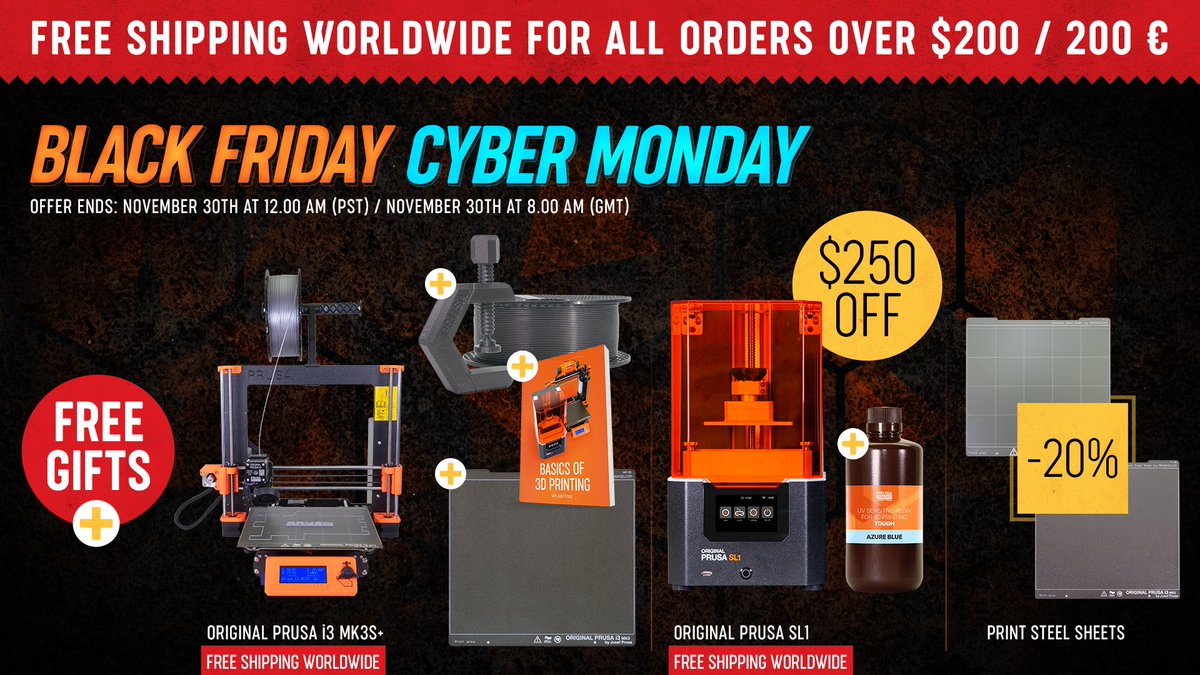 Black Friday Free Shipping Worldwide Free Gifts With Mk3s And Sl1 And Filament Discounts Mini Shipping Info Prusa Printers