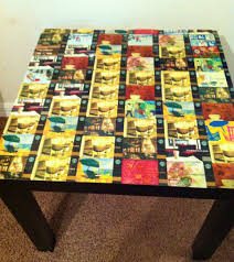 Saw This Table At Starbucks Old Painted Coffee Or Side Table With A Layer Of Gift Cards Under Glass As The Top Co Hotel Key Cards Starbucks Crafts Hotel Card