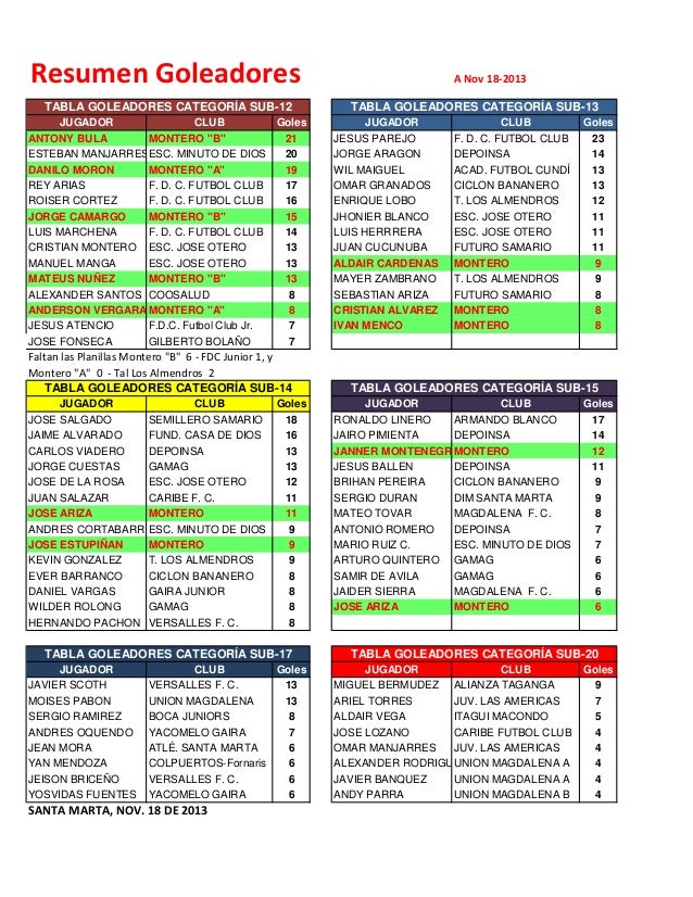 Goleadores Actualizados A Nov 18 2013 Liga Futbol Magdalena