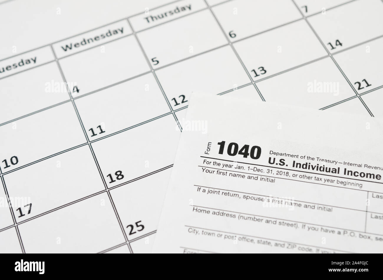 Formulario Irs 1040 Del Impuesto Sobre La Renta Individual Volver En Blanco Se Encuentra En La Pagina De Calendario Vacio Concepto De Periodo Fiscal Espacio Para El Texto Copia Fotografia De Stock