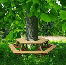 The Picnic Table Around A Tree I Built Today Tree Seat Bench Around Trees Tree Bench